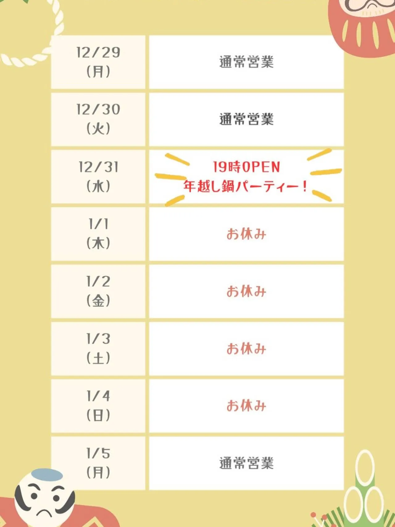 31日はリピーターの方限定にはなりますが、鍋パーティーもやろうと思ってますのでぜひあそびにいらしてくださいね!!🙌